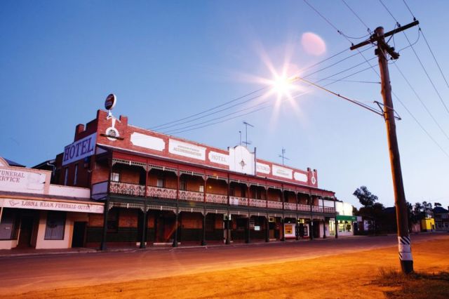 Ouyen, Victoria’s “Town of Choice", is the commercial and transport centre for the surrounding grain farm region. The railway station dominates the town, but an equally marvellous feature is the Hotel Victoria. Built in 1919, it has all the classic iconic hotel features. Apart from the power lines running across the street, it would be a perfect setting for a period outback movie, with horses instead of cars parked out the front. The hotel has a grand staircase to the second floor, high ceilings, creaky old hallways and a magnificent front bar that stretches almost the length of the building. The atmosphere and hearty pub menu makes dinner here a must. It has one shortcoming: built in the old tradition, guests in all but one of the 29 rooms have to share bathroom facilities.