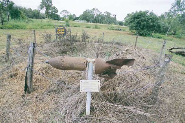 Nearby, still clearly visible from the road is a bomb crater caused during a Japanese raid on Katherine in March 1942. It’s actually on private property – as is the old Gallon Licence Store, which still bears shrapnel scars from anti-personnel daisy cutters in its corrugated iron doors – but the owners don’t mind curious, respectful visitors having a look round.