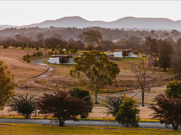 Located on a 50-hectare working cattle farm, the property has ambulant access and a swimming pool and is next to Mogo Zoo. The six one-bedroom villas all have plunge pools and polished interiors, and an outlook of green grass and gums.