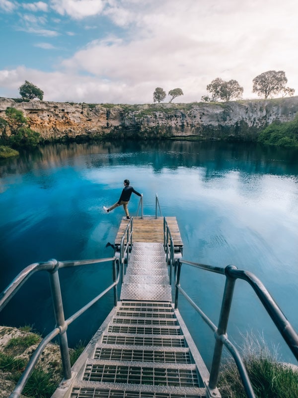 Popular with swimmers and cave divers (the latter only permitted for divers who hold at least the CDAA Deep Cavern grade dive rating, Little Blue Lake with its stairs and floating pontoon is one of Australia’s most accessible sinkholes.