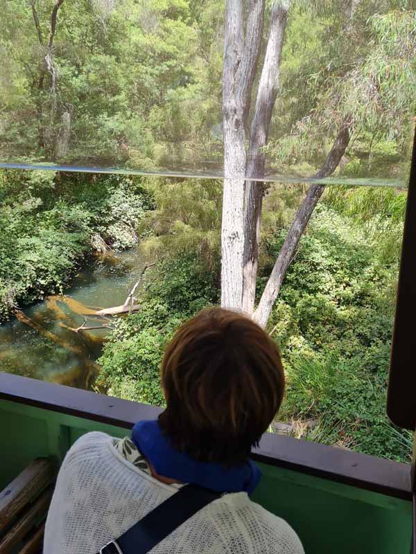 The Pemberton Tram crosses bridges as it meanders through a forest of giant trees.